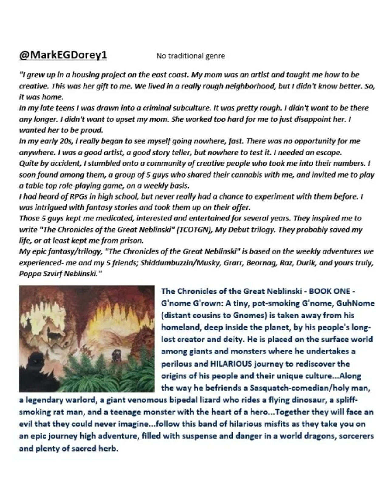 The following genres are represented: ChicLit/Romcom, Sci-Fi, Dark humour, thriller, dystopian, coming of age, fantasy, poetry, shorts, Middle grade fantasy, Kids’ adventure/fantasy, Action/adventure GameLit, picture book, genre crossing FF romance/suspense thriller, adventure fantasy 10-12 yr old, Non-Fiction and even one that is no traditional genre.